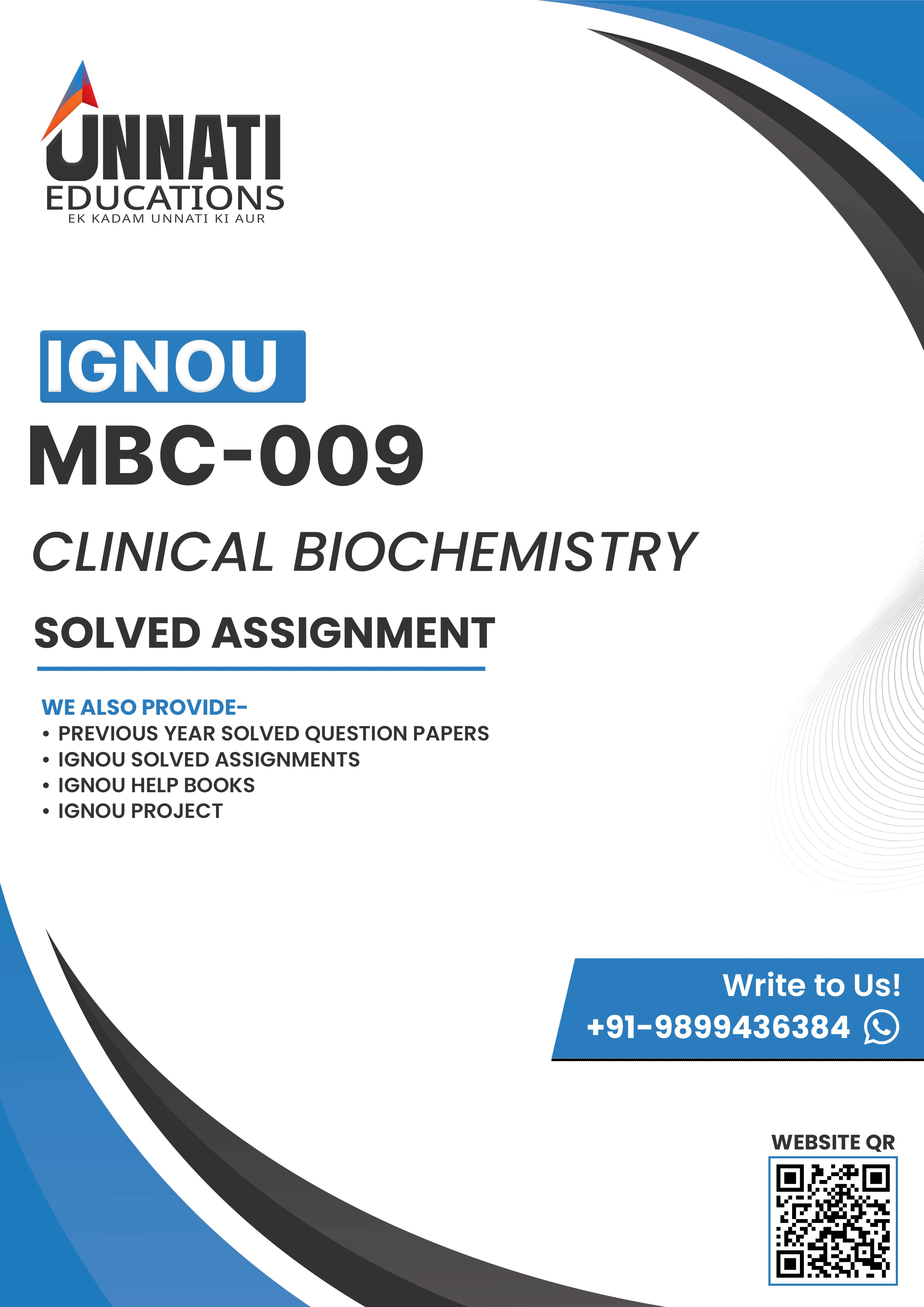 MBC 009 Clinical Biochemistry Solved Assignment 2025-26 is specially prepared for IGNOU M.Sc. Biochemistry (MSCBCH) students. This course covers clinical diagnostics, enzyme assays, metabolic disorders, electrolyte balance, hematological parameters, organ function tests, and disease-based biochemical markers. The assignment strictly follows MBC-009/TMA/2025-26 guidelines with structured answers, correct word limits (50/100/250-300 words), and proper scientific explanation so you can confidently write and score well in internal evaluation.