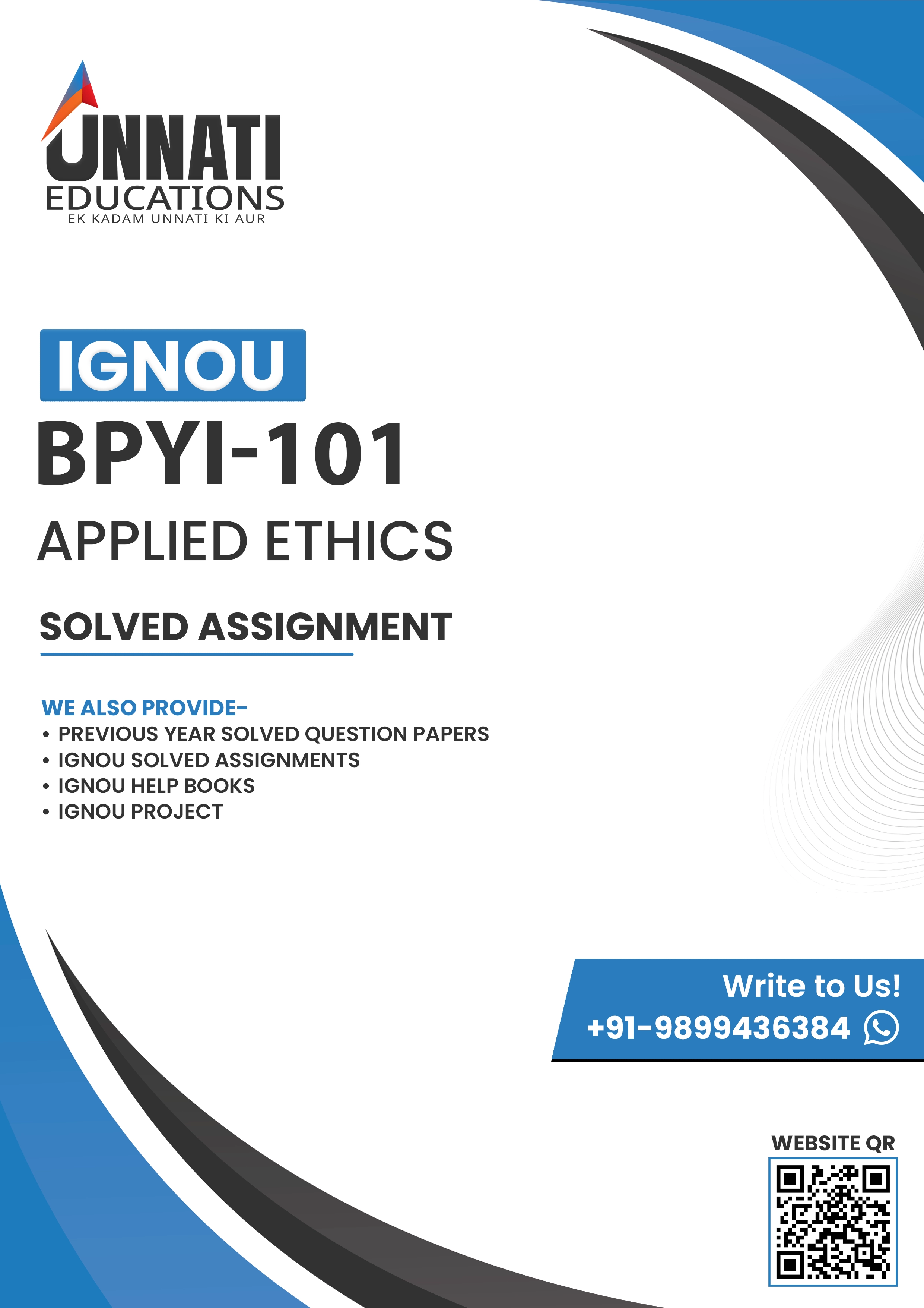 BPYI 101 Applied Ethics Solved Assignment is prepared strictly according to the latest IGNOU TEE December 2025 and TEE June 2026 guidelines. This BPYI 101 Solved Assignment covers the history and relevance of ethics, Kantian deontology, morality, normative ethics, climate change, bioethics, medical ethics principles, cyberspace ethics, euthanasia, CSR and utilitarianism. All answers are written in clear and simple language so that you can understand ethical theories deeply and rewrite them confidently in your own handwriting.