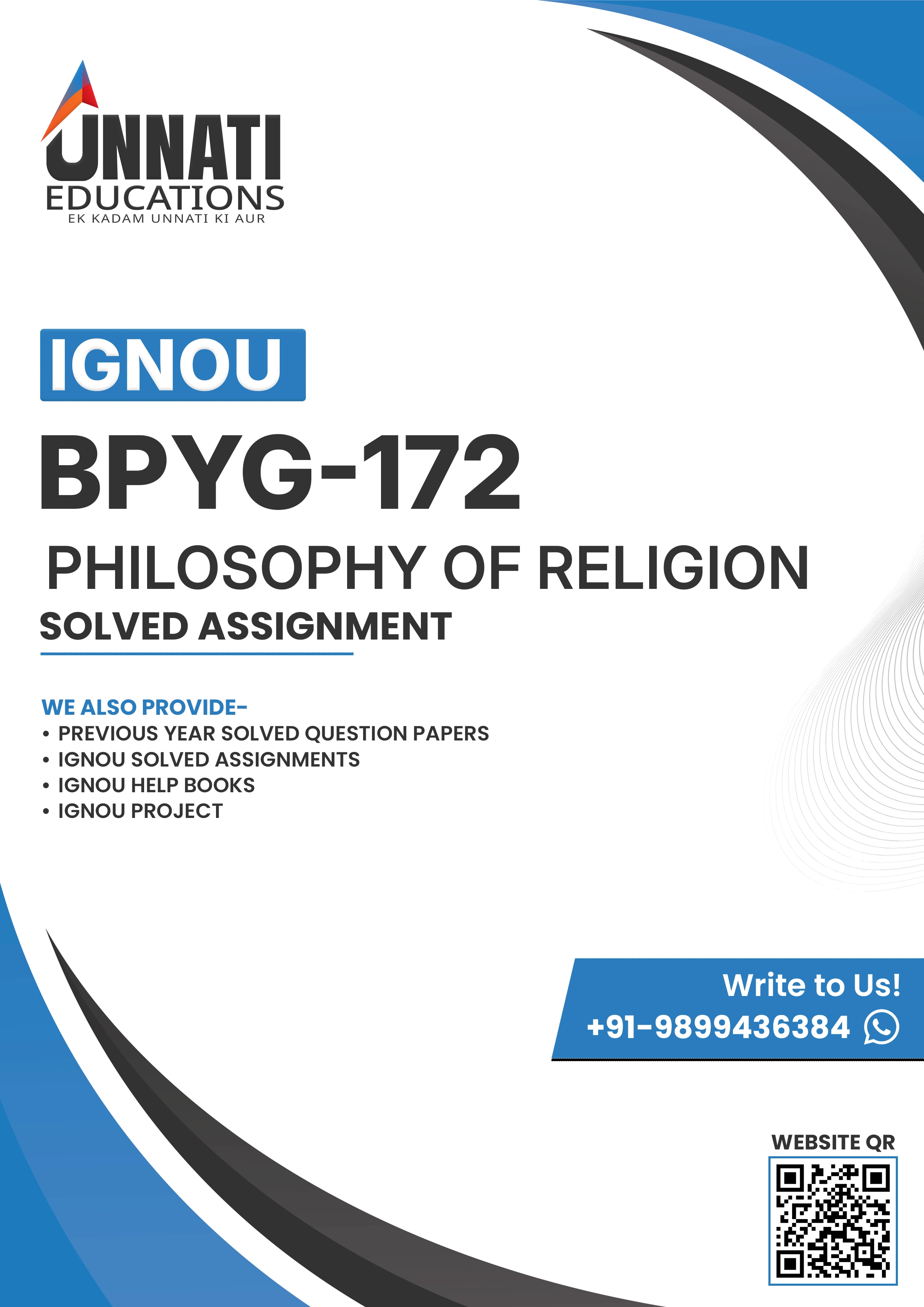 BPYG 172 Philosophy of Religion Solved Assignment is specially prepared for students who want clear, well-structured, and exam-ready answers. BPYG 172 Philosophy of Religion Solved Assignment covers important themes like religious experience, problem of evil, religious language, monotheism, atheism, agnosticism, and various philosophical arguments about God. The answers are written in simple academic English so you can understand concepts deeply and write confidently in exams.