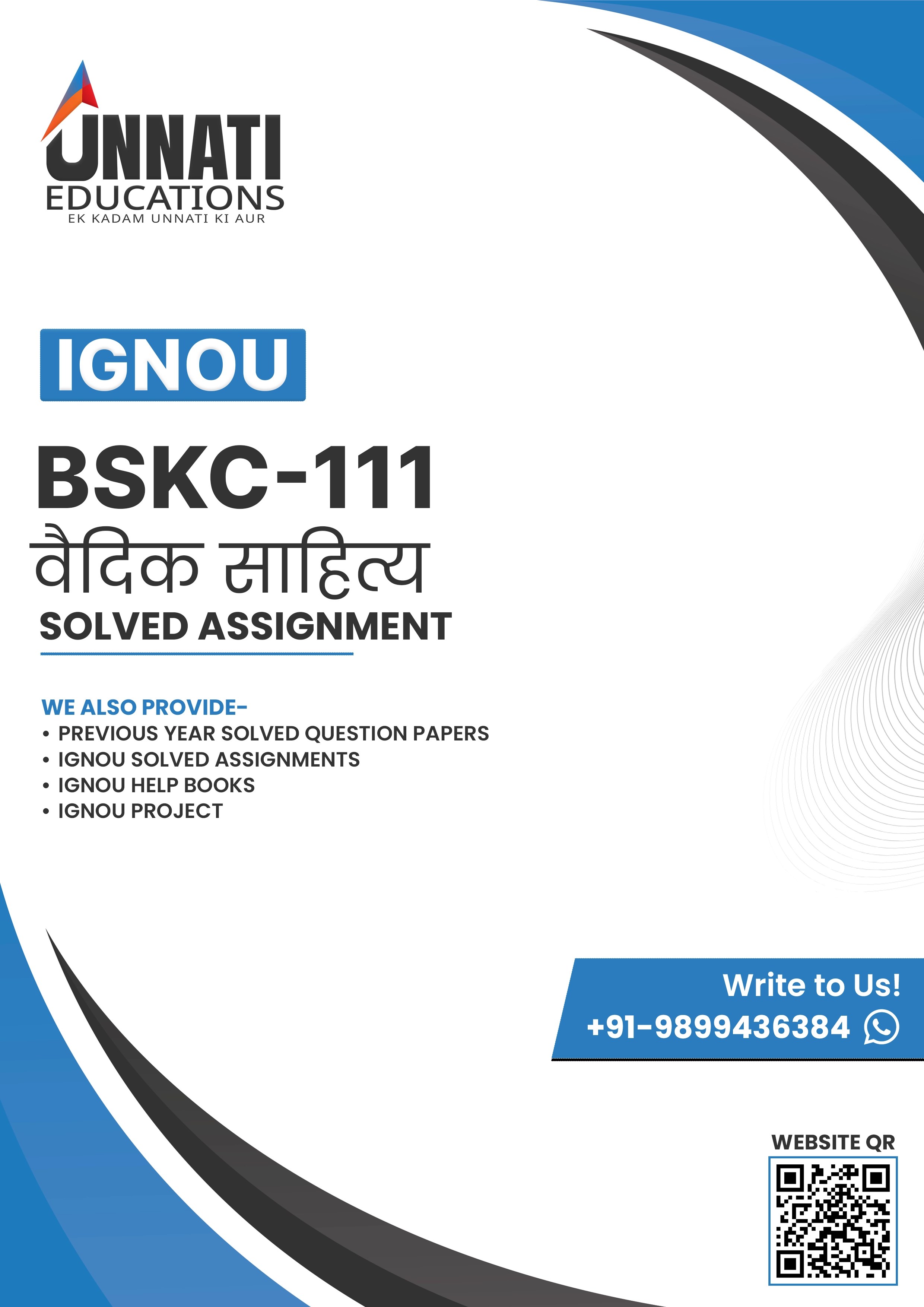 BSKC 111 वैदिक साहित्य Solved Assignment is specially prepared for BA Sanskrit (BSKH) students enrolled in January 2026 and July 2026 sessions. This course focuses on Vedic mantras, Rigvedic tradition, Hiranyagarbha Sukta, Shiv Sankalp Sukta, Mundaka Upanishad philosophy, Para and Apara Vidya, symbolic interpretation of Vedic hymns, and linguistic aspects like Lakar, Swarit and Pad-Path. Our solutions are written in simple academic language, structured as per IGNOU evaluation pattern, and designed to help you score confidently without confusion.